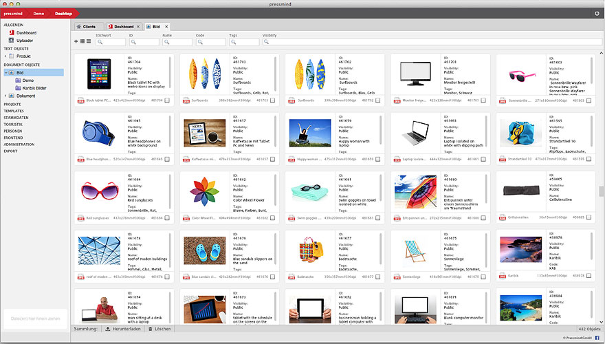 Jedes Bild nur einmal hochladen und zuordnen - egal, auf welchem Ausgabekanal es veröffentlicht werden soll. Dies bietet das pressmind MAM. Das System ermittelt die Auflösung für den Druck sowie den perfekten Farbraum zur Darstellung im Internet. Auch die Ausgabe des Copyrights erfolgt automatisch. Originalbild speichern und verrechnete Ausgabeformate automatisch steuern - mit pressmind MAM kein Problem!