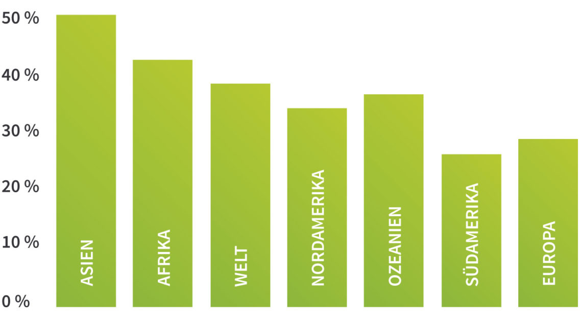 Anteil mobiler Endgeräte an allen Seitenaufrufen im Jahr 2015* nach Kontinenten